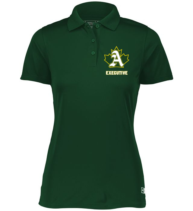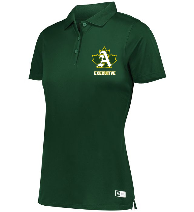 The Russell Athletic® Ladies Essential Polo is engineered with dri-power moisture wicking technology, odor protection, and a UPF 30+ rating keeping you dry, comfortable, and protected from harmful uv rays. This polo feels great during your backswing, while a rib knit no curl collar adds a professional look for the office.