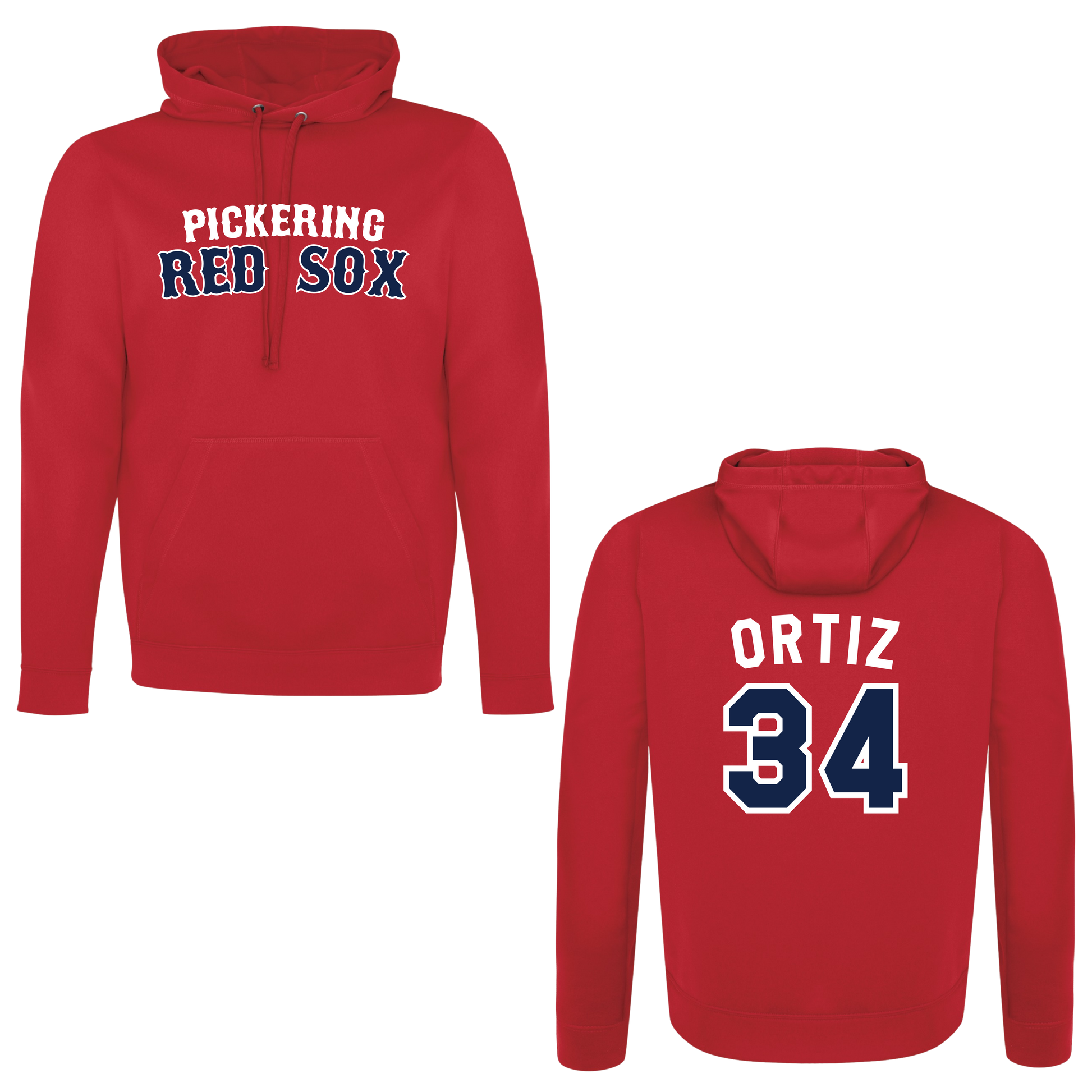 PICKERING RED SOX 100% POLYESTER HOODIE with NAME + NUMBER OPTION